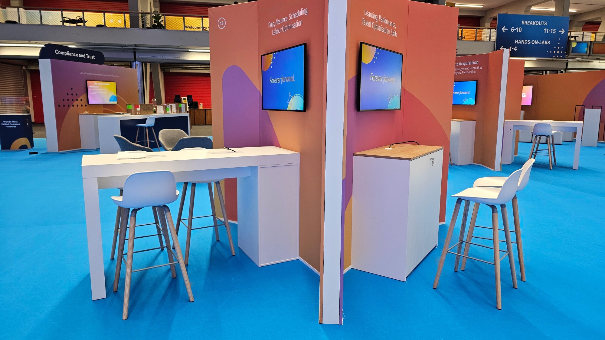 Session room screens are essential for presentations and interactive content in conference or event spaces. We provide power solutions that keep these screens running smoothly throughout the day. For added functionality, spaces near screens can be enhanced with simple USB or other power sockets—making it easier for presenters and attendees to connect devices and create more interactive, flexible environments.